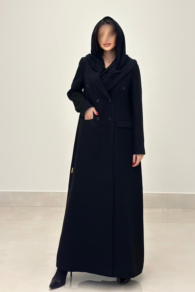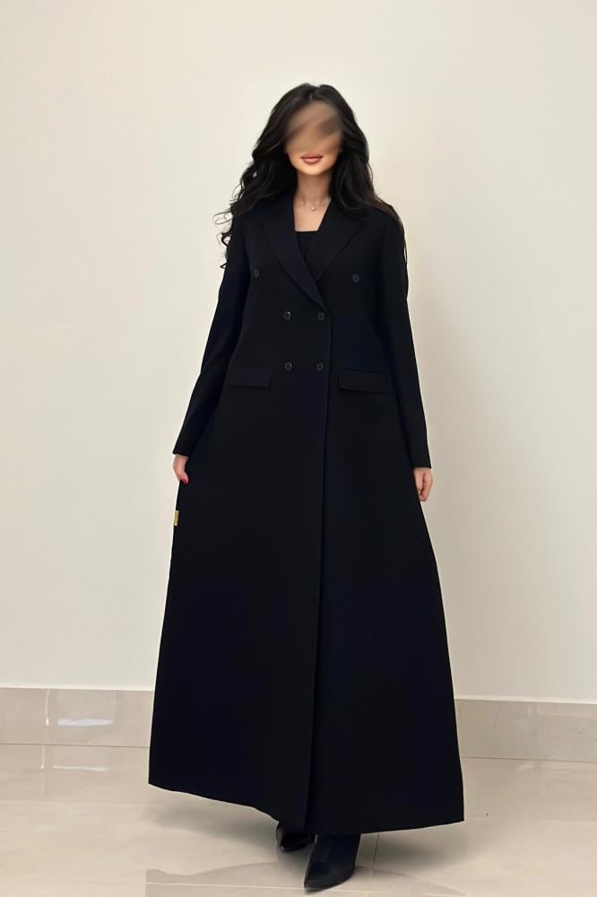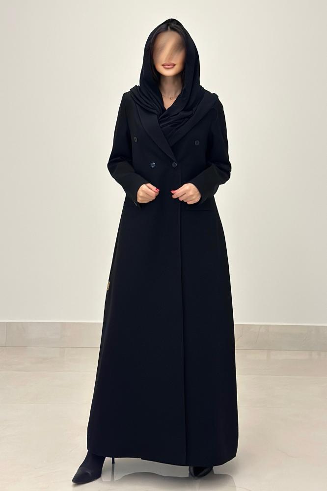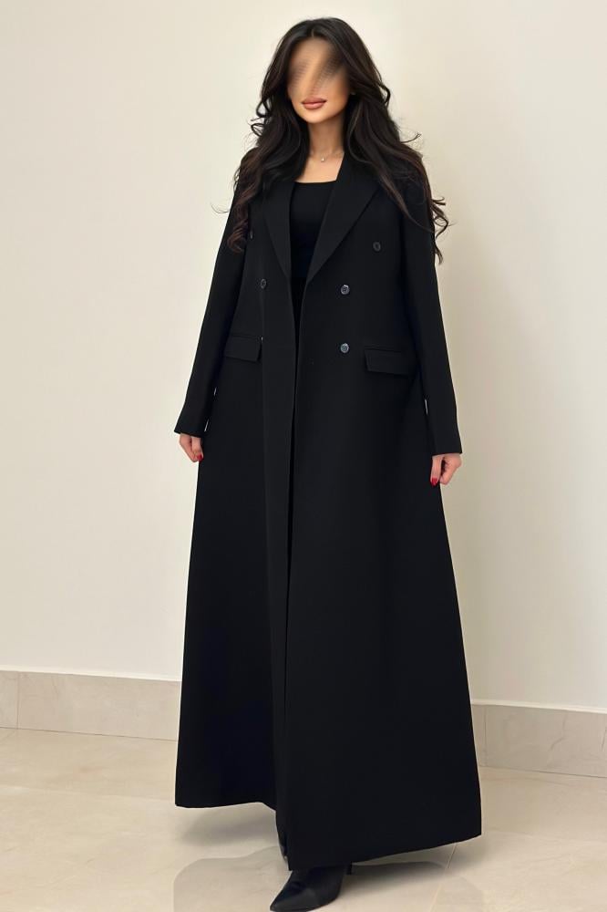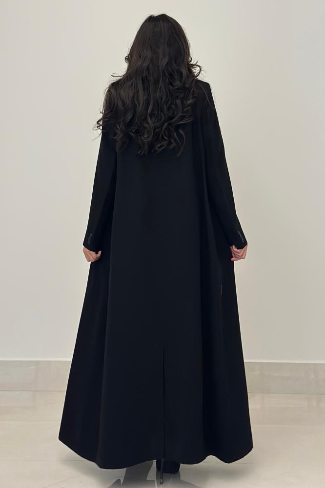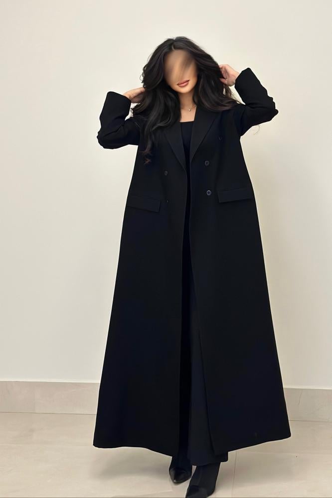 عبايه بليزر باللون الأسود جميلة أنيقة بقصة عصرية بقماش الكريب الكتان الأسود الكوري مبطنة بقماش البونجية مع خياطة داخلية وجيب داخلي وجيوب أماميه وفتحة من الخلف وكتافات وأزرة سوداء من الامام وعالأكمام مع طرحة سادة باللون الأسود.