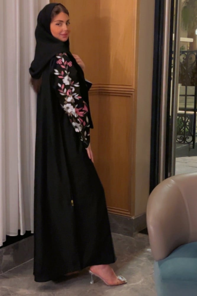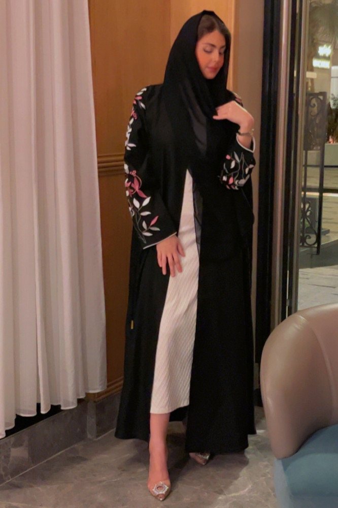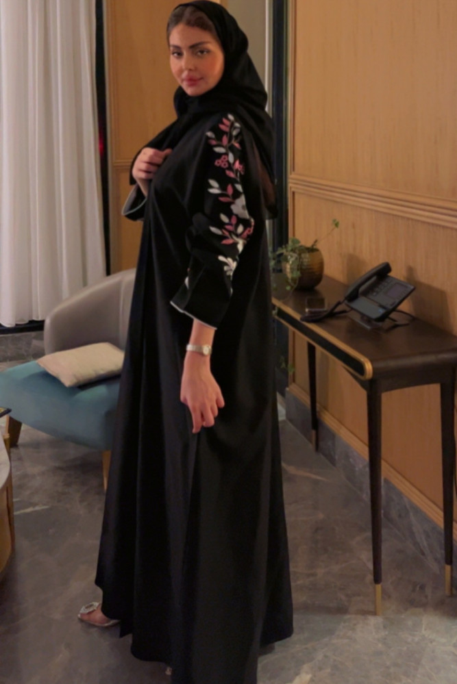 عباية مريحة كريب وتطريز ورد عالاكمام