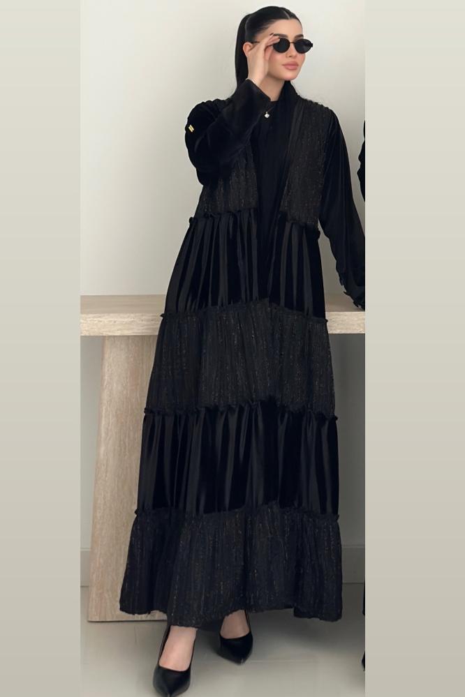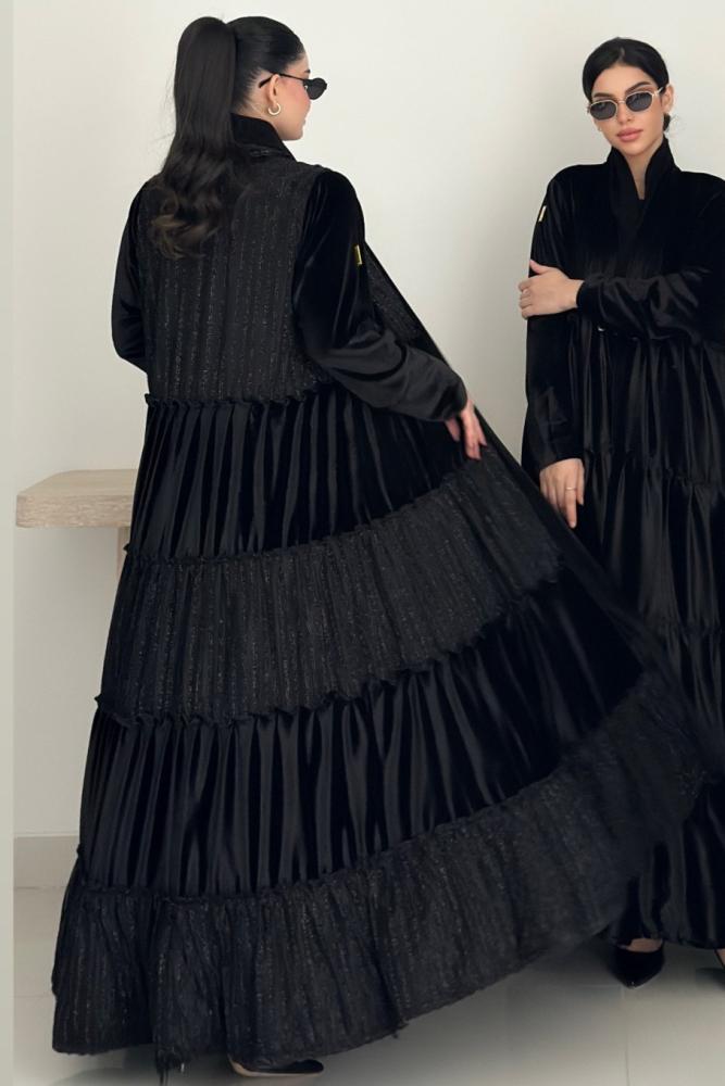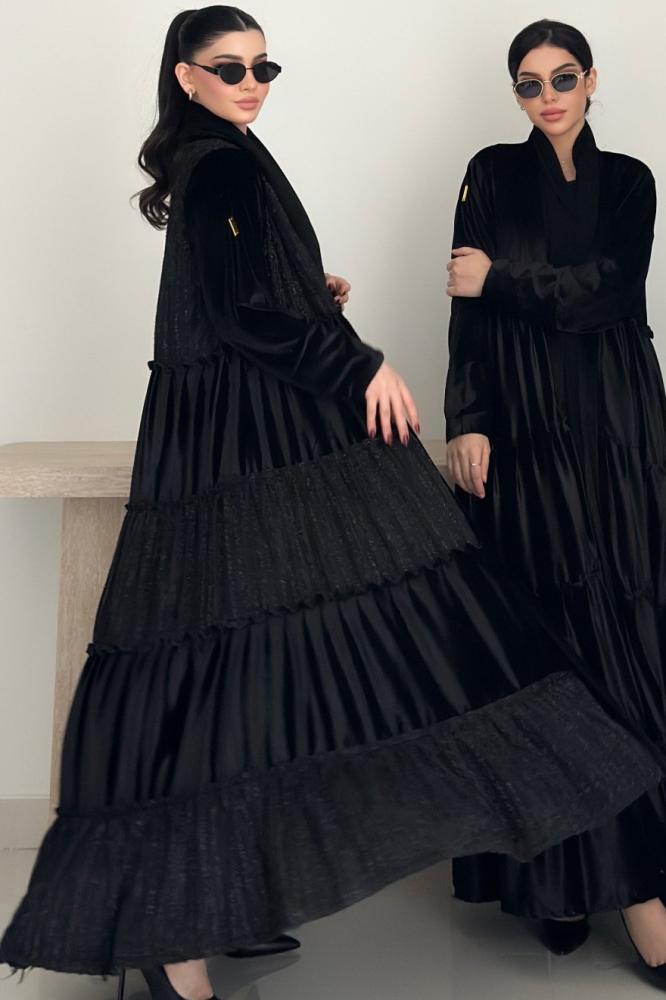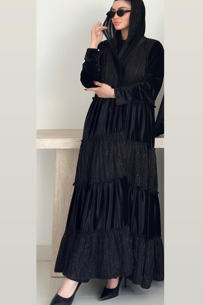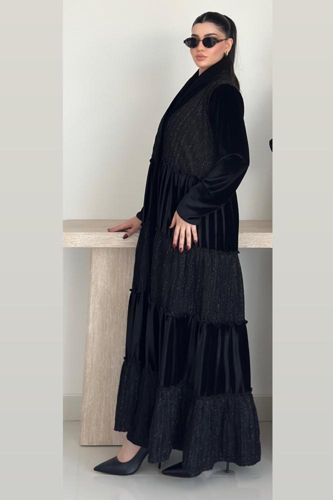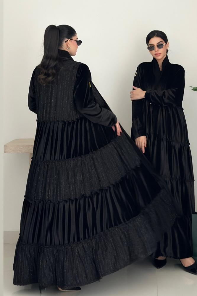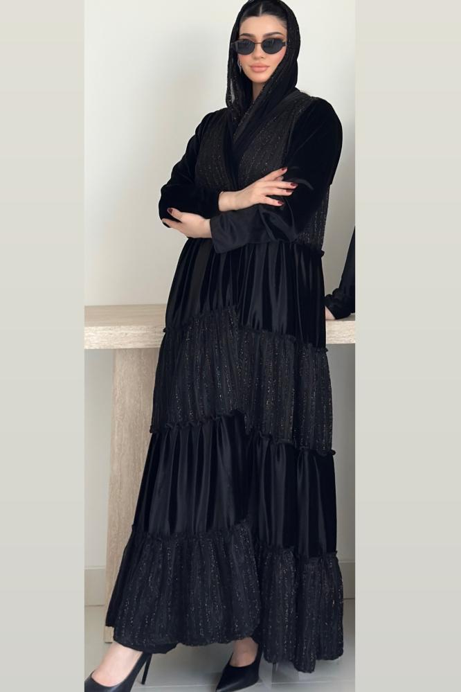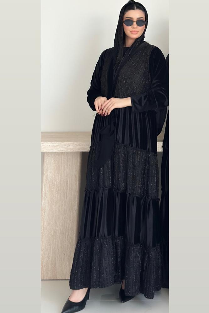 عبايه طبقات خامتين مخمل و شانيل والطرحة محدده بالشانيل بالطول