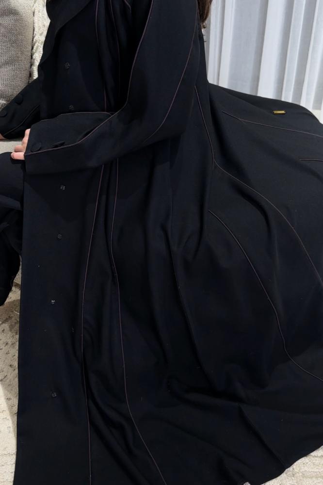 عباية كريب ملكي صيفي مع قيطان عنابي وطرحة محدده بقيطان عنابي رسمية وعمليه وللدوامات.
