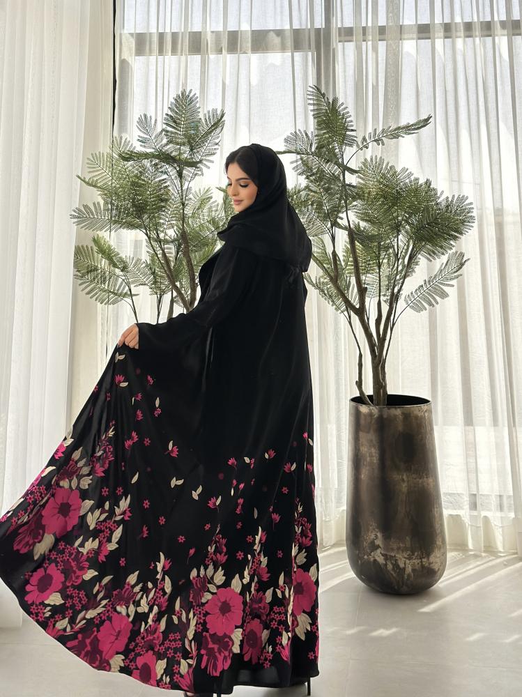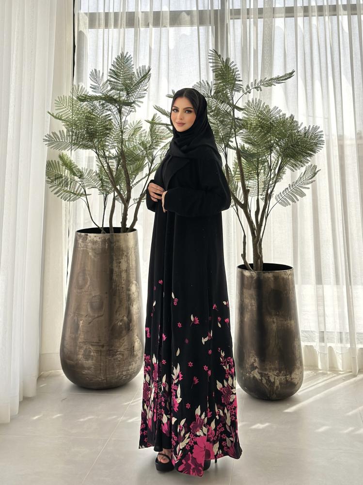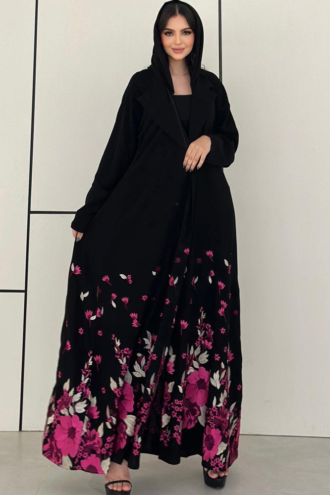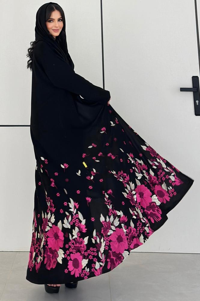 عباية الورود كلوش كريب ملكي صيفي تطريز من الأسفل .