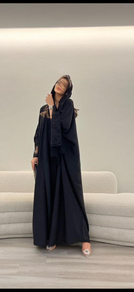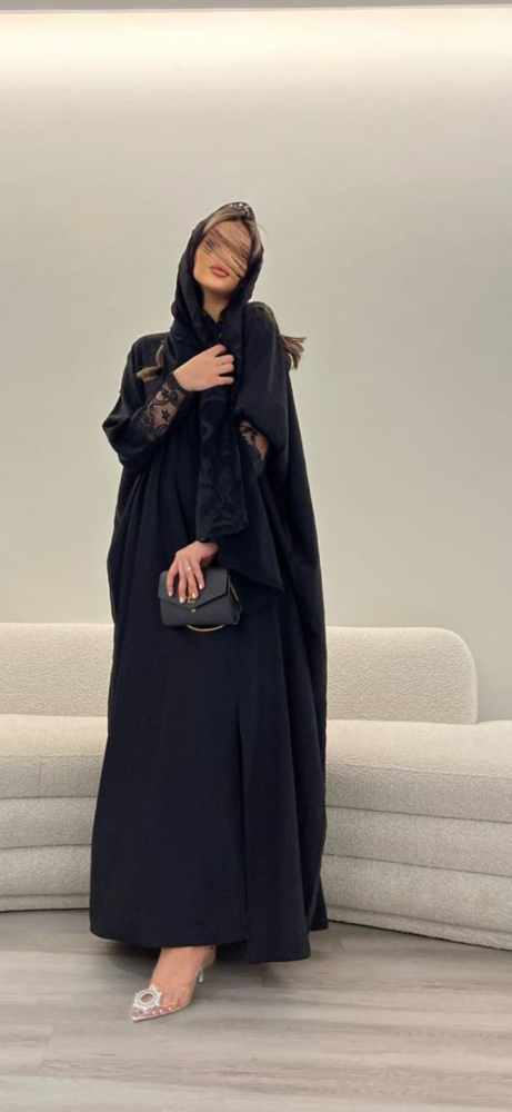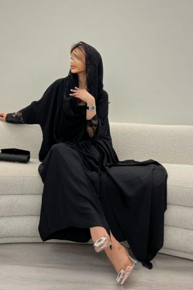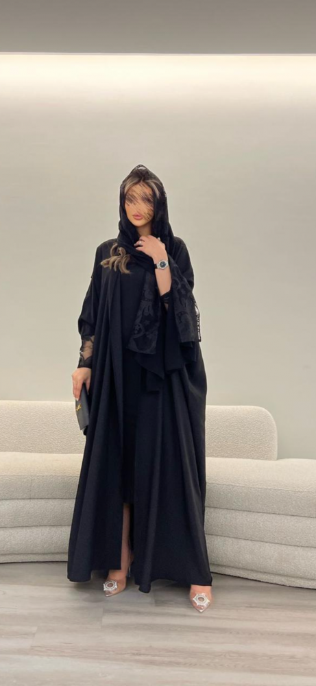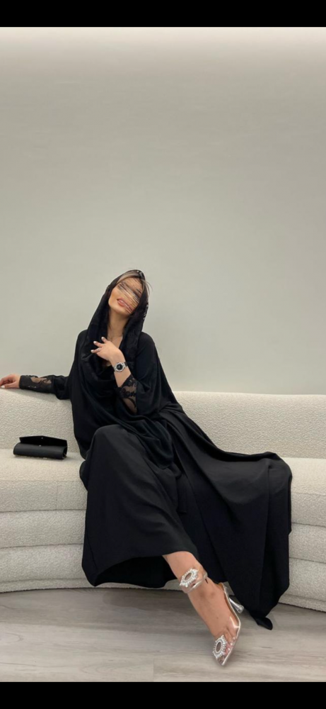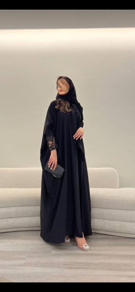 عباية مريحة مع دانتيل عالأكمام والطرحة